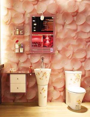 手繪潔具:讓盥洗室藏萬(wàn)種風(fēng)情 浴室除了清潔功能,還可以為我們提供一個(gè)冥想、沉思的空間,增加一兩件手繪潔具,能夠讓整個(gè)環(huán)境充滿雅致雋永的氛圍。我們每天呆在衛(wèi)生間的時(shí)間并不少,為什么不把**、浪漫也帶到衛(wèi)生間去呢?