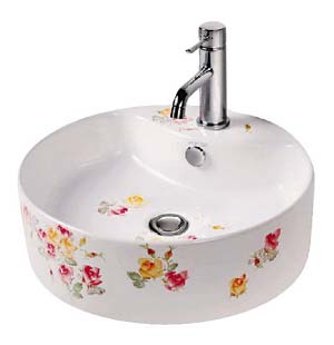潔具也可以花“顏”巧語(yǔ),也可以風(fēng)情萬(wàn)千,而且因?yàn)槭鞘掷L,再加上藝術(shù)師的隨意發(fā)揮,因此每件潔具繪上的花卉都有可能不一樣,即使相似,每片花瓣的色澤也可能出現(xiàn)深淺的差異;即便色澤相似,也許這片花瓣“飄落”于這個(gè)盆的底部,而到了那個(gè)盆上已“開(kāi)”在了邊緣。