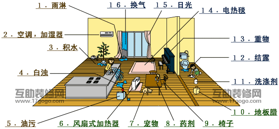 剛剛裝修好的房屋、會從裝修材料和家具中散發(fā)出甲醛、刺激眼睛或產生異味、要注意通風換氣,要注意結露后的水滴不要滴落到地板上。