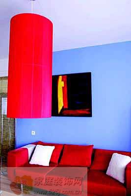紅色的布藝沙發(fā)突出了簡潔的現(xiàn)代感