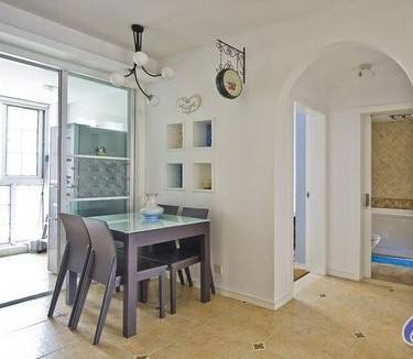 特地打造的玄關(guān)立墻被用來區(qū)隔出門廳(用材是最基本的水泥板,只是為了防塵才刷上薄薄的清漆),兩塊仿磚雕鑲嵌其中,更像農(nóng)家院常見的影壁。玄關(guān)是用花1000元收藏的舊柜子充當(dāng)?shù)?,上面放的是狠殺?00元的青花瓷器。各是個(gè)的,卻渾然一體。一面與玄關(guān)立墻成直角的門鏡有效地?cái)U(kuò)充了視覺空間。是進(jìn)門第一眼、出門最后審視自己一眼的最佳位置。