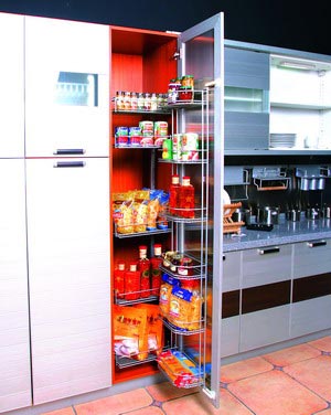 如果你家櫥柜的里面是干干凈凈的擱板配門板,那你在儲物的空間利用上就大大落伍了,現(xiàn)在的櫥柜要的就是打開之后像冰箱一樣井然有序。