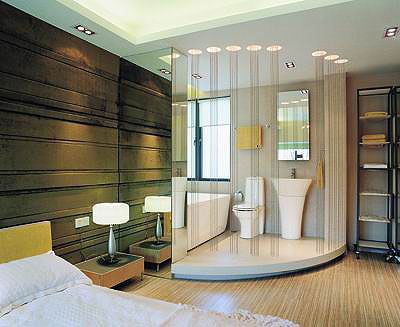 現(xiàn)代家居裝修中,廚房與浴室已受到越來(lái)越多的重視。隨著隱私觀念的改變,一些人對(duì)衛(wèi)生間的觀念也逐漸擺脫舊有樣貌,不再是隱蔽的小空間,取而代之的是半透明、全透明甚至全開(kāi)放的空間,置于房間一側(cè)甚至房間的正中。