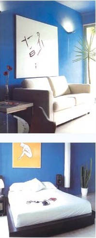 具有天生設(shè)計才能的DavittChin用他的有限預(yù)算,做了大量創(chuàng)新性的工作。他親自動手粉刷了公寓,式樣奇妙的家具也是他親自設(shè)計的。強烈的藍綠色和簡潔的線條賦予了這個公寓的客廳強烈的個性。在藍綠色的墻和天花板下,白色并不引人注目,卻強調(diào)了門和家具的方位。為了避免可能產(chǎn)生的單調(diào),DavittChin從市場精心挑選了兩個蝴蝶椅,深橙色和黑色的椅子與四周形成了鮮明的對比。此外,從簡約的理念出發(fā),他從燈具店購來一個曲線優(yōu)美的落地?zé)?,與環(huán)境相得益彰。最終營造出了他自己的格調(diào)。