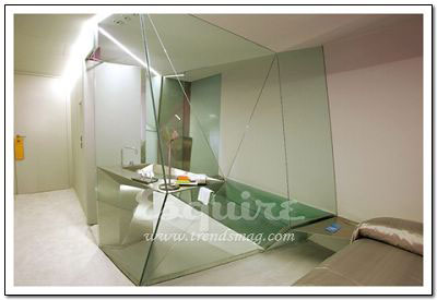 最另類的玻璃利用哲學(xué):一掃臥室在人們心中只是安靜的休息場(chǎng)所的形象,嘗試充分利用玻璃的反射效果來營造變幻莫測(cè)的閣樓空間效果。最具偽裝效果的家具:你發(fā)現(xiàn)浴缸了嗎?仔細(xì)看看洗手池的后面。最大膽的顏色選擇:把床單搞得像調(diào)色板一樣的復(fù)雜很簡(jiǎn)單,但那叫惡俗而不是大膽,最大膽的顏色選擇莫過于這間屋子床上的亮銀色,這才叫真正的大膽。