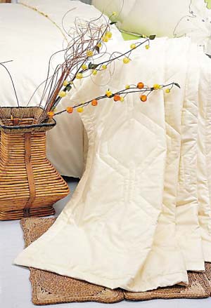 最好的蠶絲被應(yīng)該是用100%的桑蠶絲做填充物。因蠶在生長過程中不能碰農(nóng)藥等化學(xué)物品,蠶絲被稱得上最綠色環(huán)保的被子。它可以讓皮膚自由地排汗、分泌,保持皮膚清潔,令人倍感舒適。