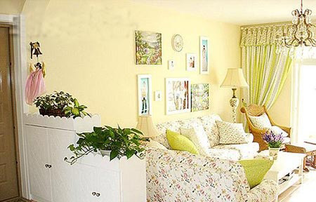 2. 餐廳和兒童房間。墻用淺奶黃色,門和窗簾的顏色為淡奶油色和淺粉紅色,這種搭配會(huì)給人一種活潑氣氛。