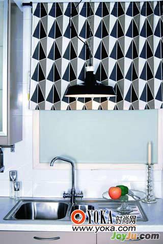 11.窗簾不一定都是長(zhǎng)可曳地,根據(jù)實(shí)際需要,長(zhǎng)度靈活調(diào)整,半簾在廚房就很實(shí)用。廚房對(duì)私密性的要求不高,因此,此處用了長(zhǎng)度僅為60厘米左右的半簾,廚房一般都不是南北向的,所以光線(xiàn)不至于太強(qiáng)。半簾在有限度遮擋部分光線(xiàn)的同時(shí),不至于遮蔽所有視線(xiàn),在廚房勞作時(shí)還能看到一些窗外的景物,愉悅廚房心情。