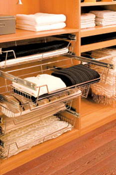旋轉(zhuǎn)拉籃:如果衣物特別多,不妨選擇旋轉(zhuǎn)拉籃,其大于傳統(tǒng)掛衣架3倍的旋轉(zhuǎn)衣架可隨手轉(zhuǎn)動、即使掛在最里面的衣物,也能在旋轉(zhuǎn)后呈現(xiàn)在面前。拉籃中特有的分隔器可以根據(jù)使用者的需要把衣籃內(nèi)部再隔開,利用小區(qū)域分類擺放配飾。