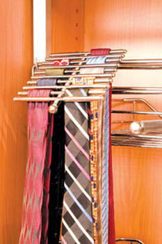領(lǐng)帶架:經(jīng)常穿著正裝的男士都會擁有許多領(lǐng)帶,以搭配不同顏色的襯衫及西裝。亂堆亂纏在一起的領(lǐng)帶,讓本來就不太細心的男人們更加撓頭,不知究竟選擇哪一條為好。而斜角度設(shè)計的金屬領(lǐng)帶架能夠很好的展示每條領(lǐng)帶。
