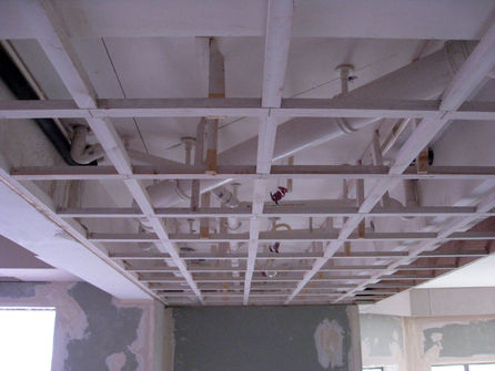 1、材料的選用:必須使用雪花輕鋼龍骨,板面無設(shè)計要求時必須采用9㎜紙面石膏板。吊頂最大間距不得超過400mm×600㎜。
