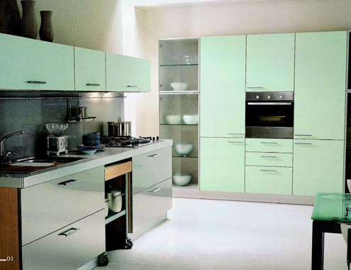 據(jù)資深櫥柜設(shè)計師介紹,功能強大的整體櫥柜在實際布置時常擺放成一字型、L型或U型。面積不大的廚房一字型較常采用,所有的工作區(qū)安排在一面墻上,節(jié)省空間。如果廚房比較寬敞,一字型的櫥柜最好拐個角變身L型,否則容易降低操作效率。U型的櫥柜有兩處轉(zhuǎn)角,空間要求最大,收藏也最豐富。