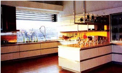 全進口廚具。價格昂貴,但無論是材料還是設備都是非常不錯的。一種從日本進口的整體廚具,長3至44米,包括上面的吊柜和下面的櫥柜及所有的設備(脫排油煙機、煤氣灶、烤箱、水池、龍頭、餐具架等),價格從3.4萬元到3.6萬元左右。這類廚具材料高檔,注重環(huán)保,也方便清洗。對一些小的方面,如吊柜上的餐具架,可能會使身材不高的女士使用起來吃力,于是,安裝了手拉籃,可根據(jù)人體高度先平移,后上下移動。安裝在櫥柜的轉角處的櫥門,配有一種可以開到180度的鉸鏈,放在轉角櫥內的東西放進拿出不受限制。最合理的要算脫排油煙機了,這個機器在內襯板上有4個40厘米長10厘米寬的吸油煙網罩,吸污功能強,而且面廣。