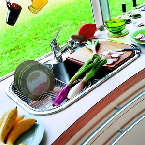 與臺(tái)面融為一體,一次沖壓成型看不到任何接縫。圓形的水盆是時(shí)下最流行的設(shè)計(jì),適合古典和現(xiàn)代的廚房風(fēng)格,同時(shí)可以與圓形燃?xì)庠畲钆涫褂?,凸現(xiàn)廚房整體風(fēng)格。值得一提的是,與方形水盆相比,同樣的容積圓形水盆占地更小。