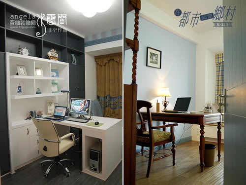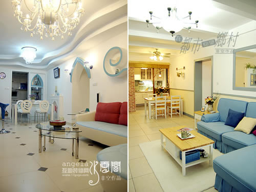 考慮到海濱大環(huán)境的因素,我給這兩家都定了帶點海洋風格的“藍調”,在不變動戶型結構的前提下;一個用柔美曲線來表現(xiàn)其嫵媚和流動;一個用硬朗的直線條展示粗放和閑適。通過不同風格的硬軟裝飾元素加以區(qū)分,家具、燈具、窗簾等元素則是走向兩個極端,于是便有了這兩個同一個“模子”做出來的不同風格的作品。當然,這兩家人也私下偷偷問我比較滿意哪家,答案!!當然是誰問我我就喜歡誰家...