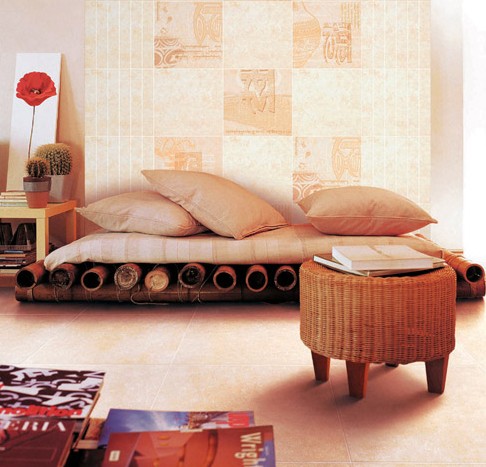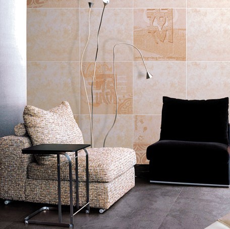 客廳的輪廓以斜插竹桿、磚體屏風劃分,豪華的歐式吊燈與熱情洋溢的“威尼斯春天”系列地磚上下呼應,真皮沙發(fā)套裝,硬木茶幾,墻面是由墻壁上凹凸混鋪的瓷磚和茶色的反光鏡片巧妙的穿插。整個客廳活潑而不炫亂,更顯現代風尚,無論新朋舊友皆可由衷感受到主人的熱情好客與雍容大方。