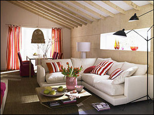 但經(jīng)過裝飾,我們發(fā)現(xiàn)其實(shí)這樣的房型也蠻可愛的。空間私密,很適合兩口之家。為了將尖頂臥室調(diào)亮光線,我們將墻壁刷成大面積的粉紅色,床單靠枕都換成大紅色,屋內(nèi)的氣氛頓時(shí)變得溫馨起來。由于天窗通風(fēng)效果好,我們利用這個(gè)優(yōu)點(diǎn),在衣柜上索性采取了無門設(shè)計(jì),以布簾替代,拿取衣服方便,也讓臥室顯得輕巧許多。房頂中央吊上一盞梭形紙燈,柔和的光線很適合臥室的曖昧情調(diào)。至于尖角落,我們利用那丁點(diǎn)空間做出一排暖氣片,位置高度恰到好處。能直接烘曬我們的小衣服,美觀又實(shí)用。天窗雖小,但裝上百葉窗后,顯得精致了許多??傮w感覺,不規(guī)則的臥室,裝飾比規(guī)矩的臥室更簡(jiǎn)單,而且容易展現(xiàn)小情調(diào)。