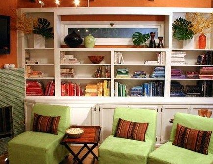 書架看起來龐大又單調(diào)乏味的話,很簡單喔,只要把書照顏色分類一下,像彩虹一樣,從橘黃到藍(lán)紫,就能輕易吸引目光喔。