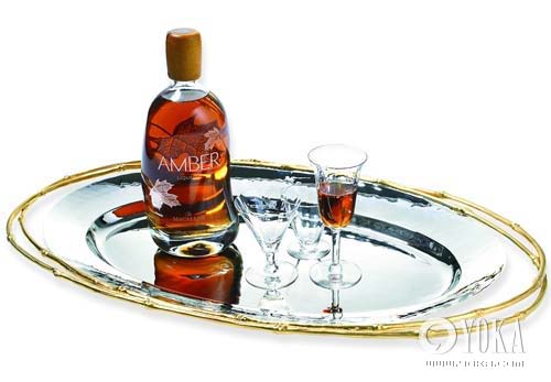 L’Objet公司的Evoca托盤為全手工打造。盤身材質選用優(yōu)雅的黃銅和光彩奪目的鎳,耐用度和抗腐蝕能力絕對一流,托盤邊上鑲包著竹節(jié)形的雙重花邊,用料全部是24K黃金,而且每一只盤子的花邊紋路是完全不一樣的。 約¥2000/套 。