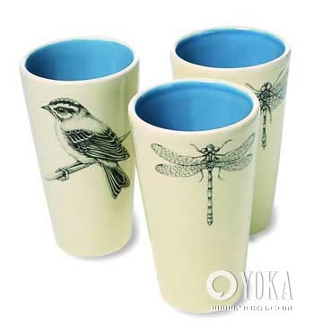 美國佛蒙特州的藝術家Laura Zindel將一項18世紀的印刷術進行了改良,然后把她自己的鉛筆畫大作結結實實地印在了瓷杯和玻璃杯上,最有趣的是她選擇的內容全部是帶翅膀的生物,比如蜻蜓、麻雀。 約¥280/只