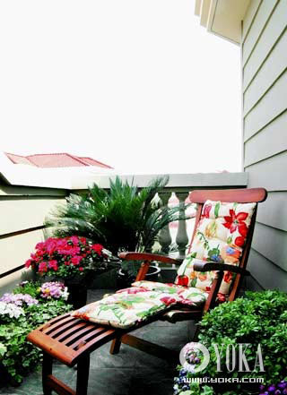 要讓陽臺上的植物顯得錯落有致,除了在植物品種上下功夫之外,還可以豐富植物擺放的方式。藤蔓類的植物既可以種在墻角,營造出“綠意蔭壁”的效果,比如爬山虎,也可以用藤編吊籃之類天然材質(zhì)的花器懸掛在陽臺上,比如常春藤、吊蘭;其它一些盆花則可以因勢利導(dǎo),置于擱架或直接放在地面都可以;如果是較大的露天陽臺,還可以選擇性種植一些體形比較高大的觀葉植物,比如小型棕櫚、芭蕉等,更有野外的天然感覺。