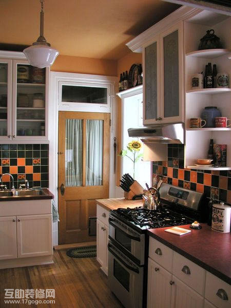 一般來說,鄉(xiāng)村風(fēng)情的廚房中墻面仍然以瓷磚為主,不過可以選擇一些花紋突出的方磚來體現(xiàn)鄉(xiāng)土氣息,另外地磚也要走仿古路線,時(shí)下非常流行的仿古方磚就是不錯(cuò)的選擇,這種磚以西班牙和意大利瓷磚為代表。當(dāng)然最簡(jiǎn)單的方式也可以只是刷上油漆,感覺上更純粹。