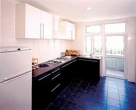 3、爐灶忌正面對(duì)沖水龍頭、洗菜盆。