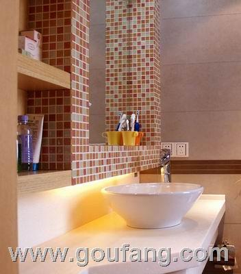 點(diǎn)評:洗手盆、座便器、淋浴房是衛(wèi)浴間必備的“三大件”,即使是小空間衛(wèi)浴間,這“三大件”也一樣也不能少。我們可以選擇入墻式龍頭、掛墻式臺盆、入墻式座便器和凈身器、入墻式花灑,這樣就可以留出更多的地面空間,也易于清潔。同樣,小衛(wèi)浴間也可以有浴缸,扇形前端浴缸就是不錯的選擇,占用的墻面面積較小,流暢圓潤的曲線外形更能體現(xiàn)設(shè)計(jì)感和獨(dú)特的眼光。如果是淋浴房的話,建議選擇中間開啟式雙開門的或者圓弧型的淋浴房。也可以購買淋浴房和浴缸結(jié)合在一起的產(chǎn)品,實(shí)現(xiàn)雙重功能,同時(shí)節(jié)省空間。