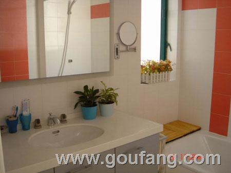點(diǎn)評:使用大面積玻璃鏡“改造“衛(wèi)浴間,可安放兩面大鏡子,一面貼墻而立,一面斜頂而置,不僅遮住樓上住戶的下水管道,也使狹小的空間富有變化、有層次感,大面積玻璃的反射,足以讓衛(wèi)浴間產(chǎn)生出“擴(kuò)大”的視覺效果。