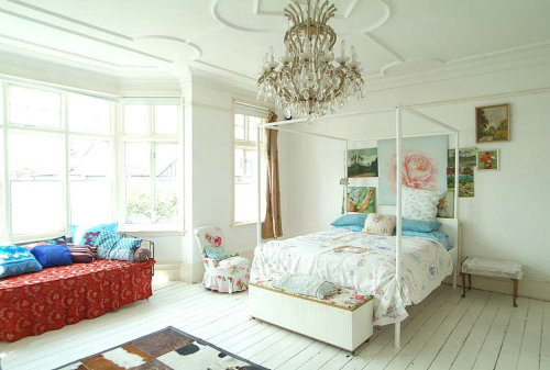 大臥室,白色依然是主色調(diào),溫馨的小花,點綴滿床