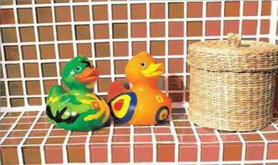 使用色彩鮮艷的馬賽克進行裝飾,既利用了空間,又成為浴室中一個吸引人的亮點
