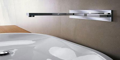 如果浴室里的面盆龍頭選擇入墻式的,則不需要臺面,可直接安裝在墻上。安裝這種龍頭,要考慮浴室的上下水管線設(shè)置。不過有一利必有一弊,入墻式龍頭會占用一定的墻面面積。