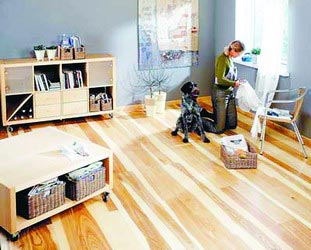 (3)地板基層。實(shí)木地板基層有兩種做法:一種在水泥樓板上刷冷底子油一遍,鋪設(shè)木龍骨,最后釘?shù)匕澹涣硪环N方法在龍骨上先鋪一層細(xì)木工板,或者是毛地板,然后釘?shù)匕澹捎眠@種方法,地板受力均勻,結(jié)構(gòu)牢固。復(fù)合地板安裝方便,基層也有兩種作法:一種先作找平層,然后鋪設(shè)PVC墊層,之后鋪設(shè)復(fù)合地板;另一種在水泥找平層上,鋪設(shè)木龍骨和毛地板,兩鋪復(fù)合地板。