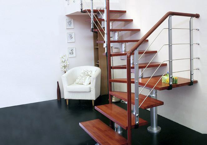 木質(zhì)樓梯是市場占有率最大的一種,因為木材本身有溫暖感,加之與地板材質(zhì)和色彩容易搭配,施工相對也較方便。選擇木制品做樓梯要注意在選擇地板時對樓梯地板尺寸的配置,目前市場上地板才尺寸以90cm長、10cm寬為最多,但樓梯地板可以配120cm長、15cm寬的地板,這樣一閣樓只要兩塊就夠了,可少一道接縫,也容易施工和保養(yǎng)。對柱子和扶手的選擇,因做到木材和款式盡量般配。
