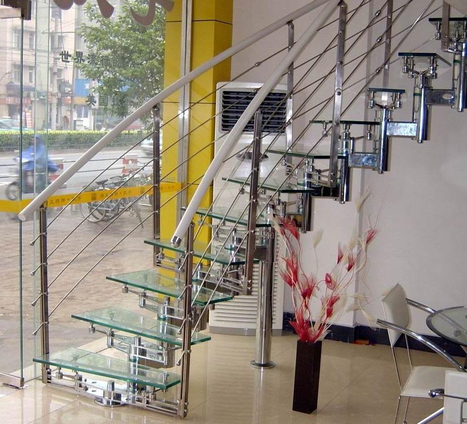 這是目前的新款式,比較適合現(xiàn)代派年輕人。玻璃大都用磨砂的,不是透明,厚度在10mm以上。這類樓梯也用木制品做扶手。價格比進口大理石低一點。