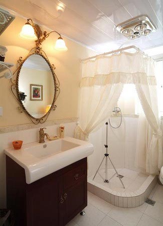 男主人是個(gè)很疼愛妻子的人,整個(gè)房子裝修得都很花俏,較為女性化。但不影響陽(yáng)剛之美,衛(wèi)生間里深色的浴室柜配以鐵藝造型花邊的鏡子,讓人并覺得突兀,反而更加潮流之美。