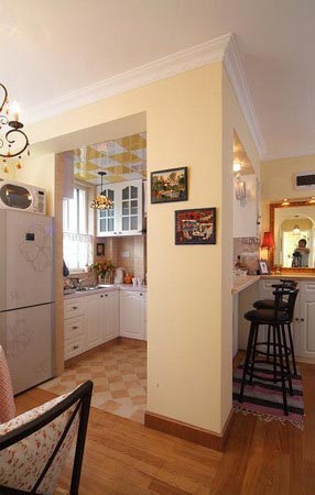 換個(gè)角度來看廚房間的吧臺(tái),雖然廚房間空間小,卻并不顯排擠。