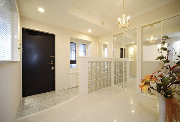為了讓玄關(guān)看起來更寬敞,所以收納柜全是采用鏡面材料。鏡子也可把視覺空間感增大。整個(gè)玄關(guān)處寬敞、明亮。