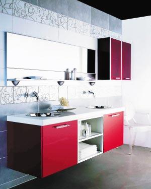 鮮亮的顏色永遠(yuǎn)不會被設(shè)計(jì)師遺忘,這款火紅的衛(wèi)浴主題墻,夏日的熱力**勢不可擋,尤其能凸現(xiàn)摩登女郎們的驚艷魅力。通體的紅色烤漆浴室家具加上銀色不銹鋼入墻龍頭,以及如蕾絲般的Art Deco風(fēng)格瓷磚裝飾,就這樣整體造型吧,即便是十分自我的衛(wèi)浴空間,也要Show出最響亮的時尚宣言。 上海裝潢網(wǎng)