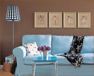 概要: 深棕色的墻前邊一擺上這淺藍(lán)色沙發(fā),房間變得韻味十足:明是明,暗是暗,統(tǒng)統(tǒng)都從容。再把靠墊套也換成淺色碎花圖案的?! ∷{(lán)色,今年夏天特別流行的松石藍(lán)色或者海藍(lán)色、天藍(lán)色,都與棕色十分相配,能讓有大面積棕色的暗調(diào)居室一下子變明亮起來。不過藏藍(lán)色是忌諱的。上海裝潢網(wǎng) 臥室墻壁刷了豆綠色,再將床上用品換成白色的,就已經(jīng)很寧靜了。