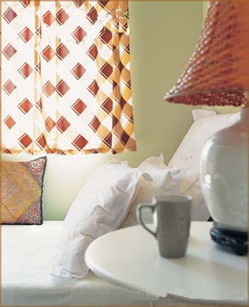臥室墻壁刷了豆綠色,再將床上用品換成白色的,就已經(jīng)很寧靜了。不過這樣的話房間缺少層次和韻味,所以搭配上棕色配飾。燈罩換成藤編的,窗簾也換成棕色黃色白色相間的格紋。白色床品5件套90元官園小商品批發(fā)市場(chǎng)。 上海裝潢網(wǎng)