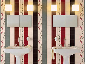 典型標(biāo)志:瓷磚多以淺色調(diào)為主,也可以用對(duì)比色關(guān)系體現(xiàn)。所用磚面多表現(xiàn)為平整光滑或有規(guī)律性、有節(jié)奏的凹凸。潔具多會(huì)選用純白色。水龍頭選用多彩色、白色或鍍銀等。