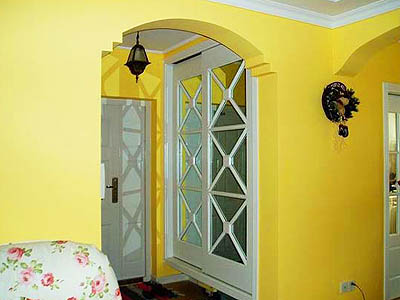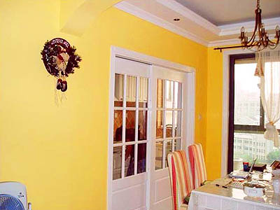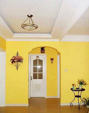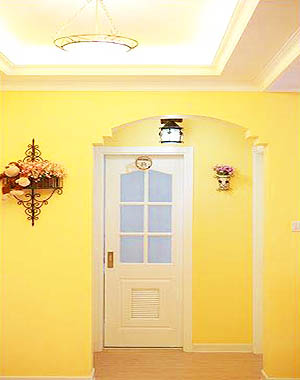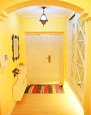 走進門的時候,看到的一個暖暖的黃色世界,玄關(guān)處,家具品還沒有完全進場,讓人感覺有點兒空。