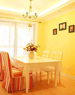 多彩的餐廳的重現(xiàn)。就餐區(qū)白色的紗簾,讓整個空間顯得很明亮。