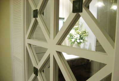 給鏤空隔斷來一個特寫,中間的方塊是很穩(wěn)重的草綠色,是買成品木花油漆后粘上去的,油漆后有經(jīng)過打磨做舊的處理。有時候設(shè)計可能很重要,其實施工工藝來得更加重要一些,不僅決定著設(shè)計的成敗,更決定著日后生活的舒適度。