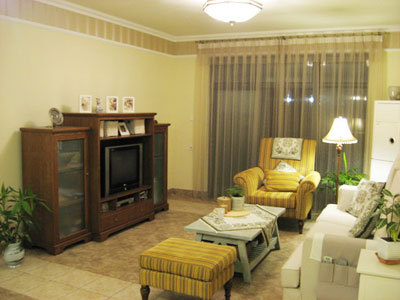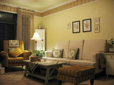 這是客廳。可能這個家的田園風(fēng)格,在客廳體現(xiàn)最淋漓盡致了。