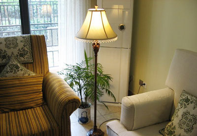 沙發(fā)后面是陽臺,午后可以享受懶洋洋的太陽,晚間拉上窗簾,打開臺燈,又是一個閱讀的好時候。