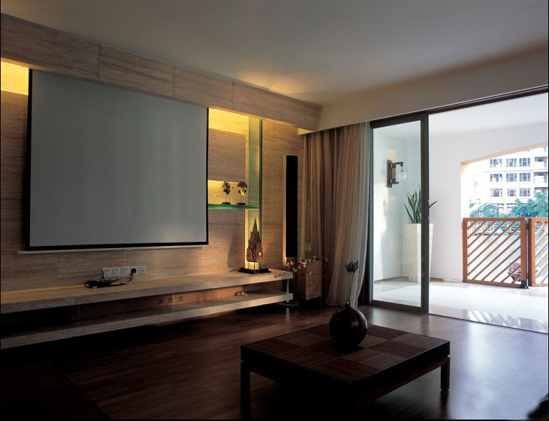 客廳根據(jù)業(yè)主愛好裝的是投影,燈光的設(shè)計(jì),讓人覺得又該是哪部大片上印。