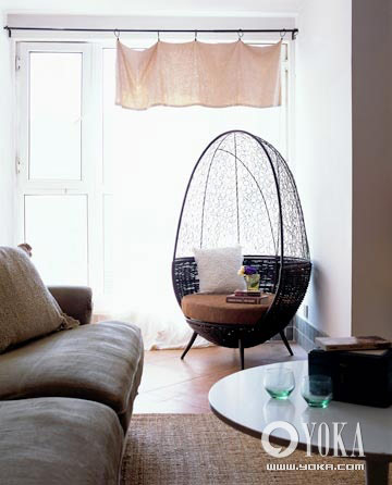 手工縫制的麻質(zhì)窗簾,若即若離地阻擋陽光,繭型藤椅上開始一段悠閑的午后時光。