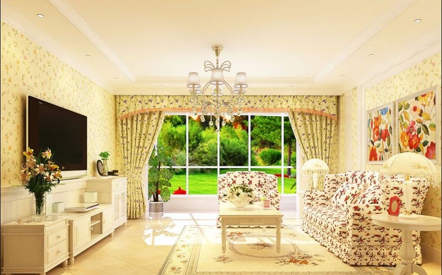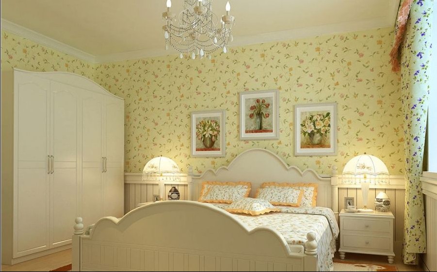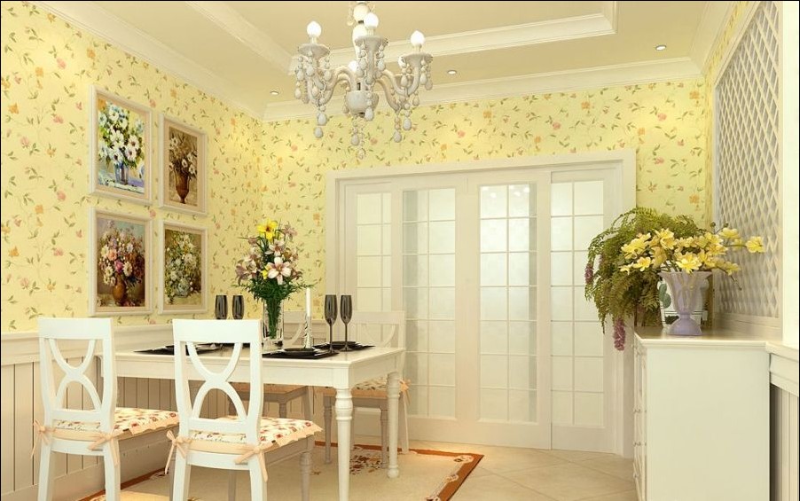 韓式田園家裝偏愛(ài)帶有現(xiàn)代感的、花朵圖案的淡雅壁紙,它與線條柔美的白色家具很和諧